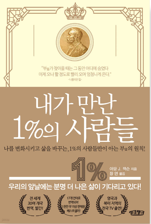 아담 제이 잭슨의 내가 만난 1%의 사람들이라는 책은 아마 많이들 모르실 겁니다. 저는 개인적으로 이 책이 너무 좋았었어. 유명하지 않은 책이어서 더 좋았어요. 막 저만 알고 있는 그런 느낌 이 책 속에 숨겨져 있는 인생 구절을 읽고 저만의 생각으로 커스터마이징 한 내용을 말씀드리고자 합니다.